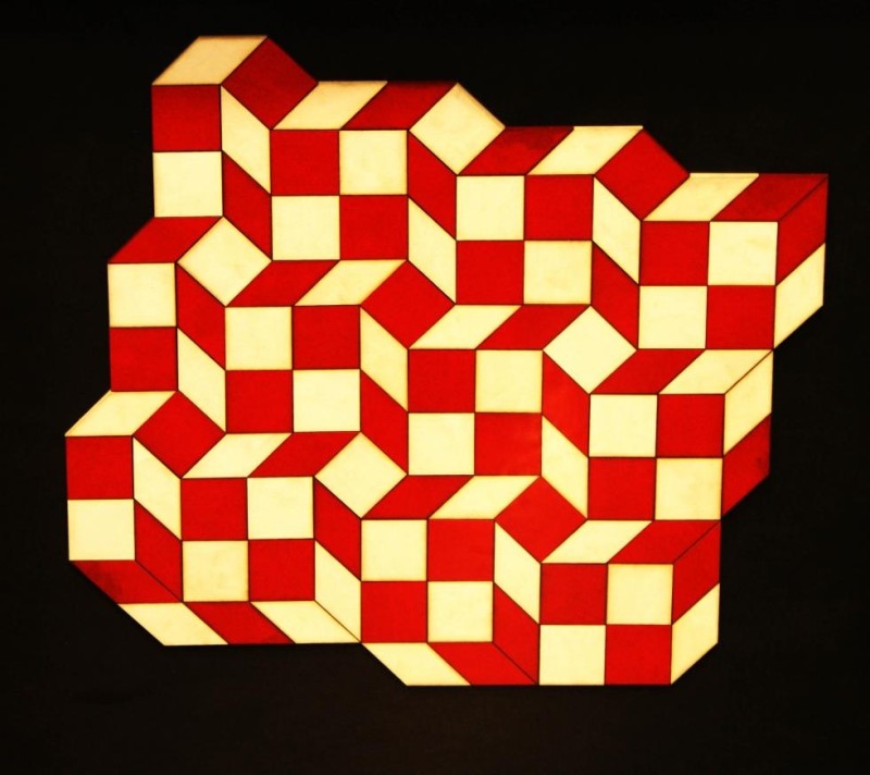 Ennio Ludovico Chiggio, Frattale Tulipano, 2008, telaio di legno rivestito di tessere di cartoncino dipinto acrilico, cm 80×80 |