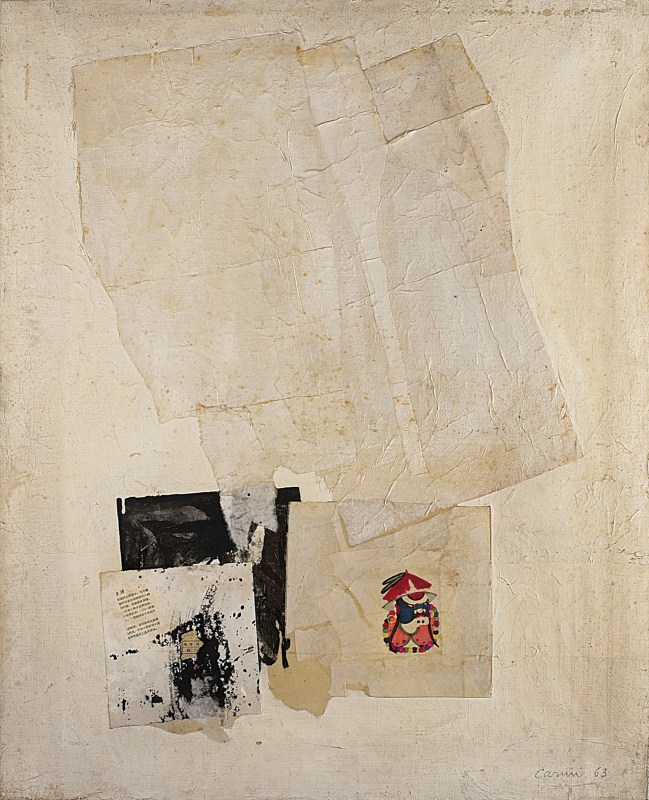 Eugenio Carmi Senza titolo 10, 1962-63, cm100x81 collage e olio su tela |