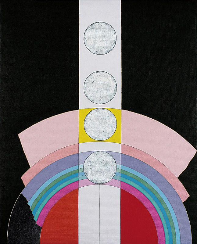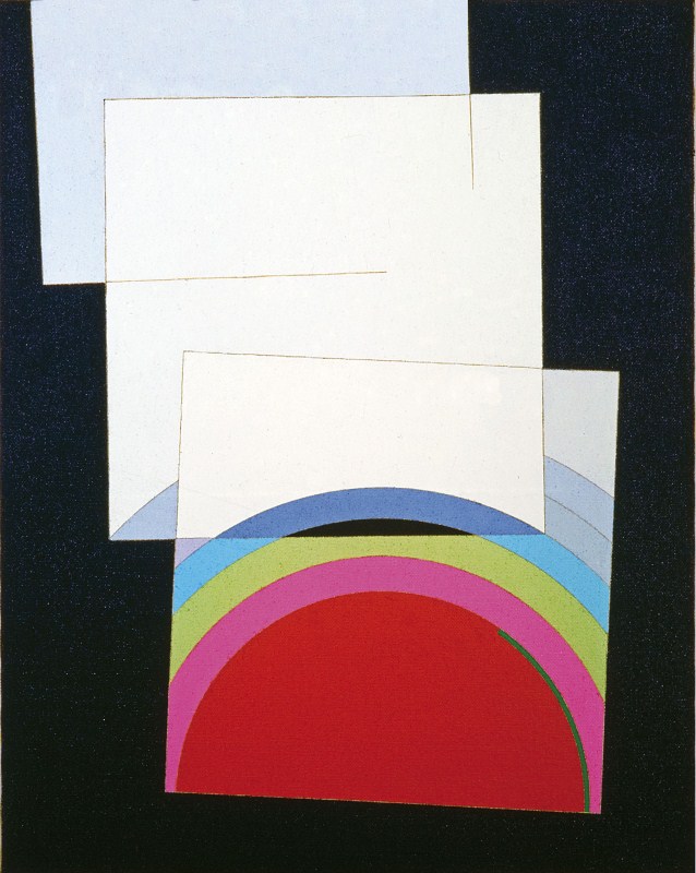 Eugenio Carmi In una città immaginaria, 1971, cm 130x100 acrilici su tela |
