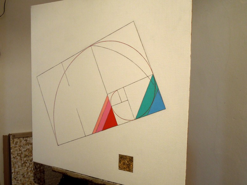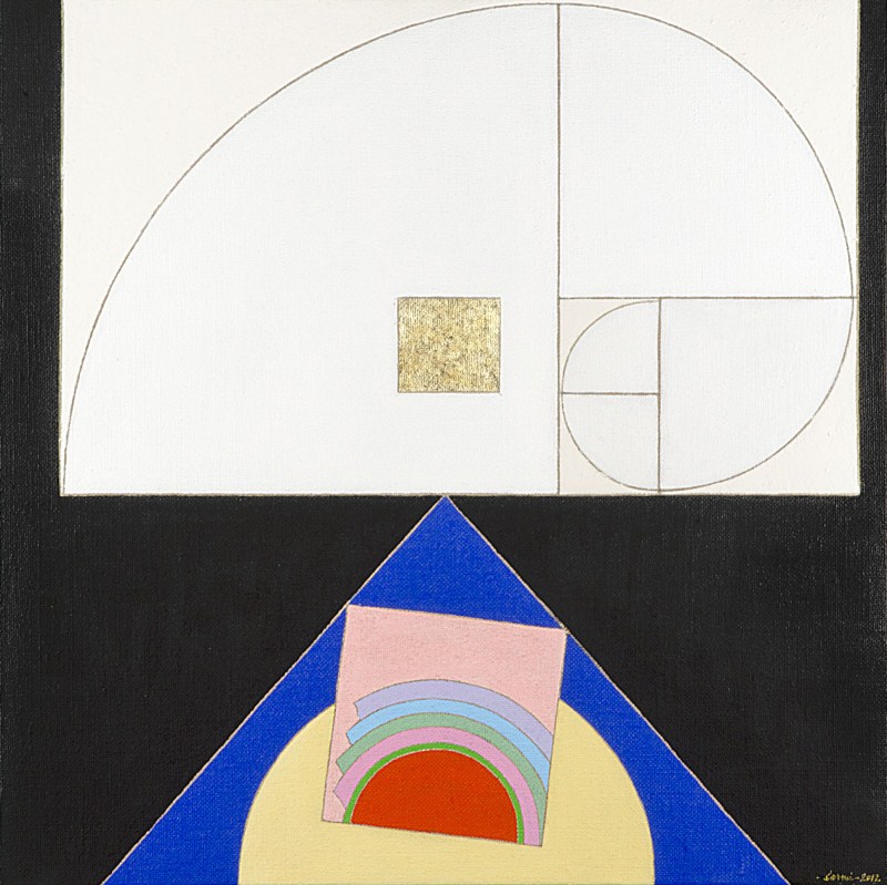 Eugenio Carmi Spirale Aurea, 2012, cm 70x70 acrilici, vernice e collage su juta |