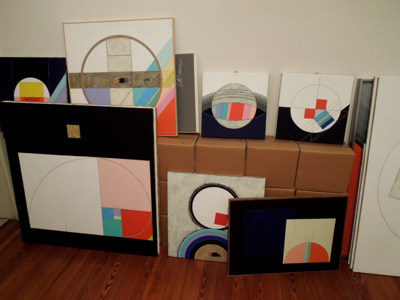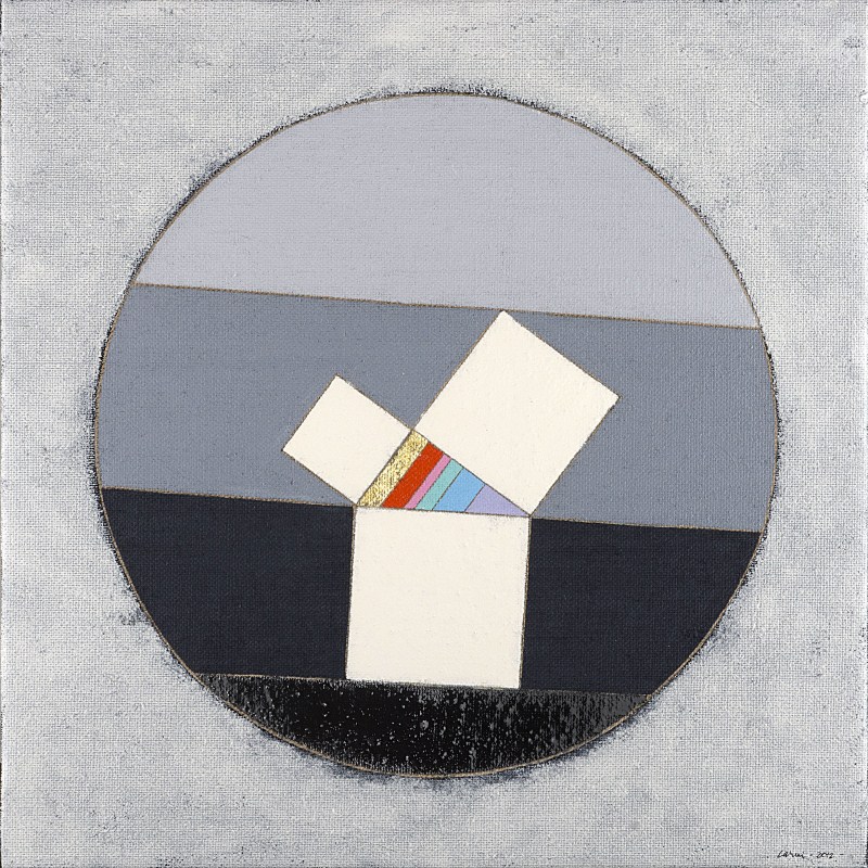 Eugenio Carmi Da Pitagora a Eraclito, 2012, cm 100x100 acrilici, vernice e collage su juta |