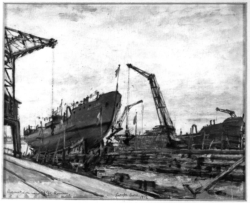 Luigi Scarpa Croce Preparativi per varo Alfa Romeo 1932 Olio su tela CM 40X49 Museo Civico di Rovereto |
