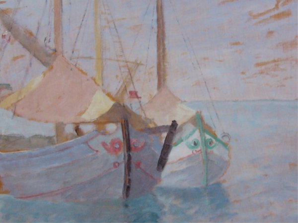 Pio Semeghini, Bragozzi a Chioggia, 1939, olio su tavola, 55 x 64 cm, Modena, collezione privata Mostra Semeghini e il Chiarismo tra Milano e Mantova 2006 Mantova, Palazzo Te |