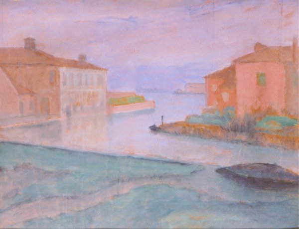 Pio Semeghini, Il ponte di Chioggia, 1939, olio su compensato, 60,5 x 70,3 cm, Verona, collezione privata Mostra Semeghini e il Chiarismo tra Milano e Mantova 2006 Mantova, Palazzo Te |