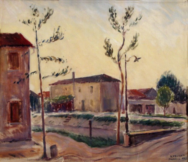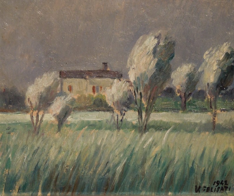 Vittorio Felisati Riviera del Brenta cm 46X54 olio su tavola |