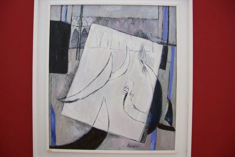 | Vinicio Boscaini (Este 1927 - Solesino 2023). Nell'ultimo incontro avvenuto più di cinque anni fa, prima della pandemia per dare un riferimento, confidò ad Alain Chivilò di essersi spinto troppo, superando la sua amata figurazione dal sapore Cubista e Surrealista sintetizzando in modo eccessivo l'azione pittorica.