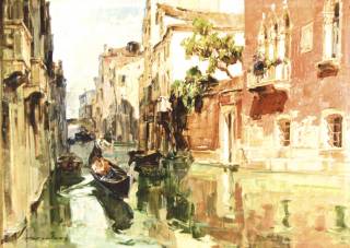 Angelo Brombo Gondole sul rio cm 50X70 olio su tela